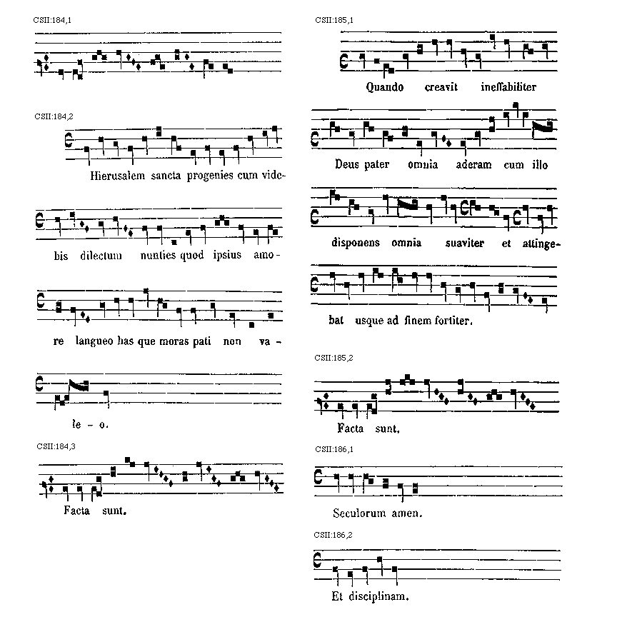 [CSII:184,2; text: Heirusalem sancta progenies cum videbis dilectum nunties quod ipsius amore langueo has que moras pati non valeo.] [ABGURAM 08GF]