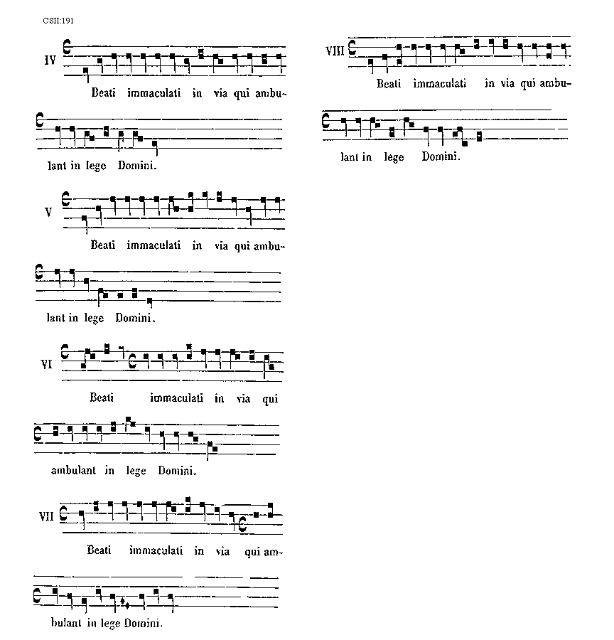 [191] [CSII:191; text: Beati immaculati in via qui ambulant in lege Domini. IV, V, VI, VII, VIII] [ABGURAM 12GF]