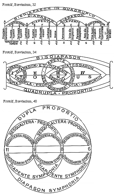 [Frutolf, Breviarium, 40; text: DIAPASON SYMPHONIA, DIAPENTE SYMPHONIA, DIATESSARON SYMPHONIA, DUPLA PROPORTIO, SESQUITERTIA PROPORTIO, SESQUALTERA PROPORTIO, 11, 9, 8, 6] [FRUBRE 02GF]