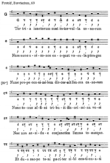 Source: Frutolfi Breviarium de musica et Tonarius, ed. P. Cölestin Vivell, Akademie der Wissenschaften in Wien, Philosophisch-historische Klasse, Sitzungsberichte, vol. 188, no. 2 (Vienna: In Kommission bei A. Hölder, 1919), 26–113.