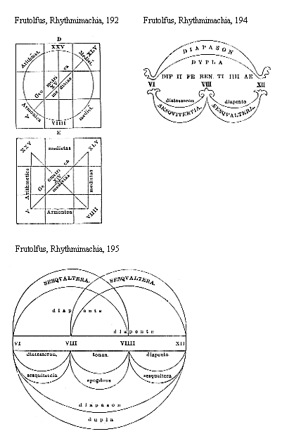 Opere precium est supra dictarum trium medietatum proprietates breuiter hic, quantum ad praesens negocium attinet, subscribere. De quibus si quis amplius et perfectius scire desiderat, Boecii de arithmetica commento sedulus scrutator adhereat. Harum autem proprietatum differentias demonstrant subiectae huiuscemodi diffinitiones. Arithmetica medietas est, [187] ubi inter tres uel quotlibet terminos equalis atque eadem differentia, sed non equalis proportio inuenitur. Geometrica medietas est, ubi equa proportio et in terminis et in differentiis inuenitur. Armonica medietas est, quae neque eisdem differentiis nec equis proportionibus constituitur, sed quemadmodum maximus terminus ad paruissimum, sic differentia maximi et medii ad differentiam medii atque paruissimi comparatur.