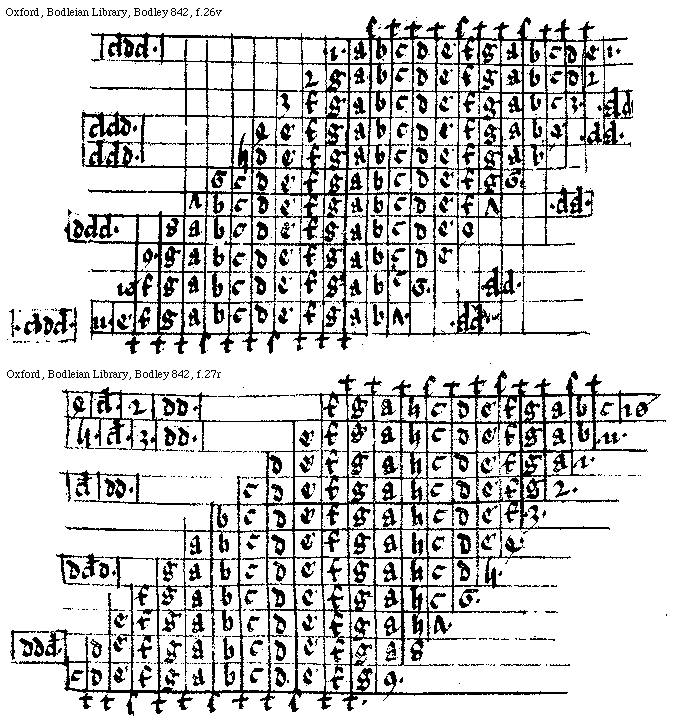[Oxford, Bodleian Library, Bodley 842, f.37r,3; text: a, e, b, f, c, g, d] [TDMUS3 21GF]