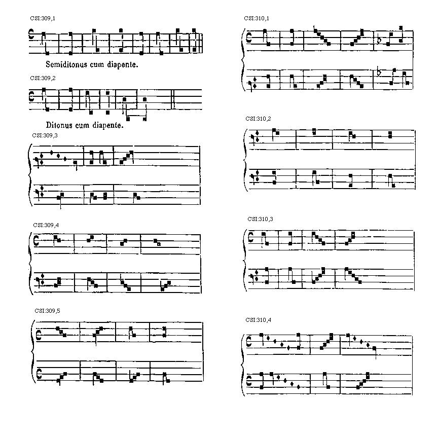 [314] Vel incipiens in diapente supra, vel cum tenore, escende duas voces, ut hic: