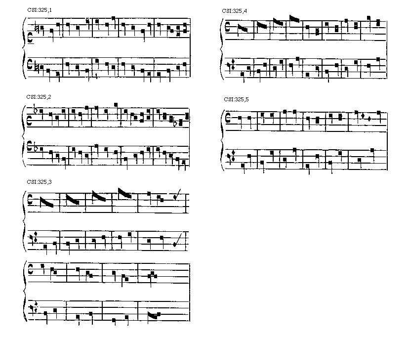 [324] Quinque sunt modi secundum magistrum Franconem, quorum primus constat ex una longa et altera brevi, vel ex omnibus longis, ut hic patet: