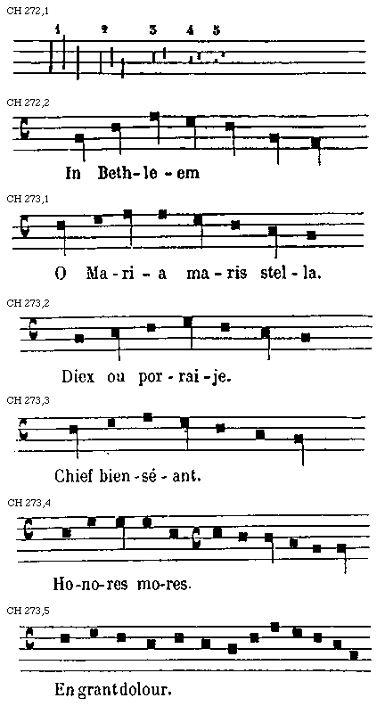 Source: Edmond de Coussemaker, Histoire de l'harmonie au moyen-age (Paris: V. Didron, 1852), 262–73.