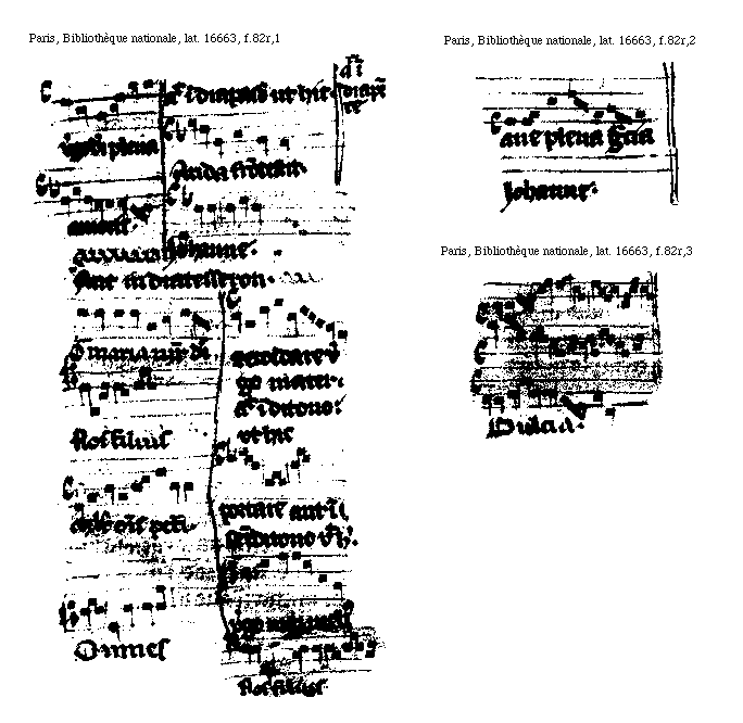 [Paris, Bibliotheque nationale, lat. 16663, f.82r,2; aue plena gracia, Iohanne.] [FRAACME 05GF]