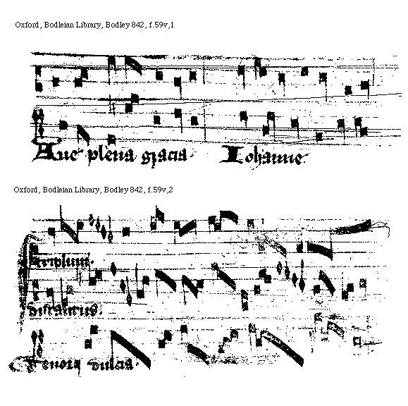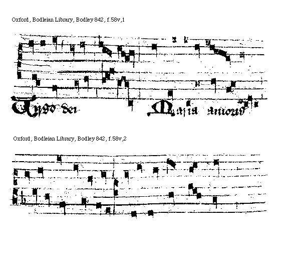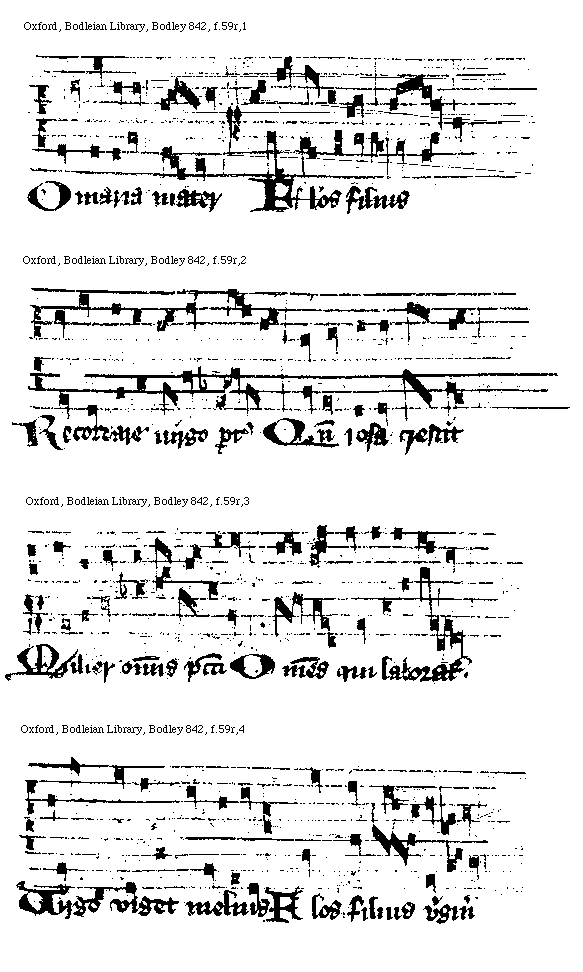 [Oxford, Bodleian Library, Bodley 842, f.59r,1; text: O Maria mater, Flos filius] [FRAACMO 09GF]