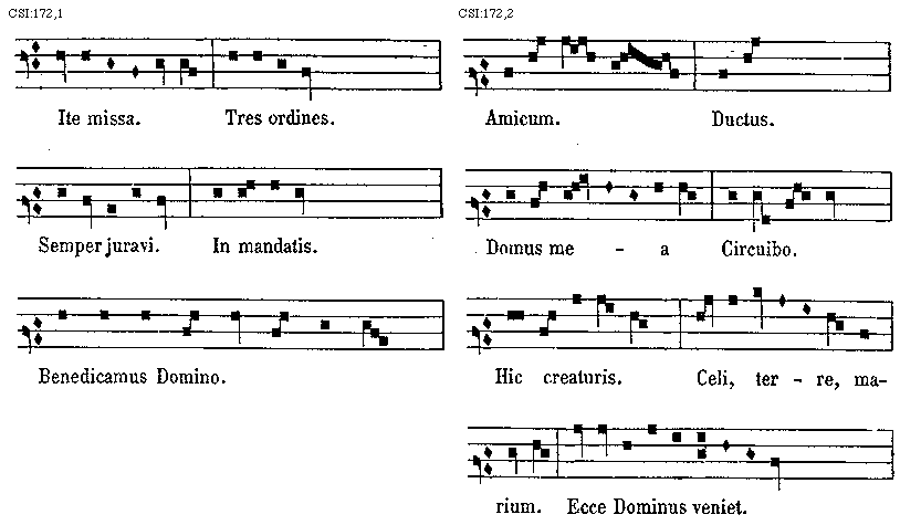 [172] [CSI:172,1; text: Ite missa. Tres ordines. Semper juravi. In mandatis. Benedicamus Domino.] [GARINT 11GF]