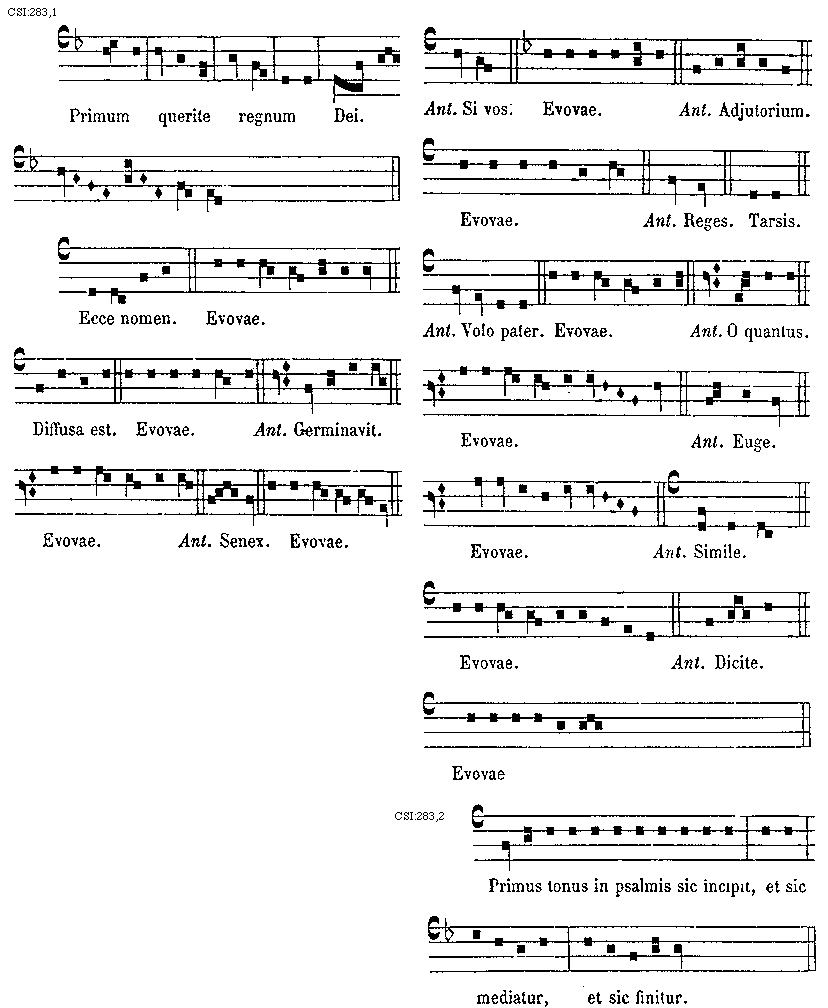 [CSI:283,2; text: Primus tonus in psalmis sic incipit, et sic mediatur, et sic finitur.] [PETTRA 01GF]