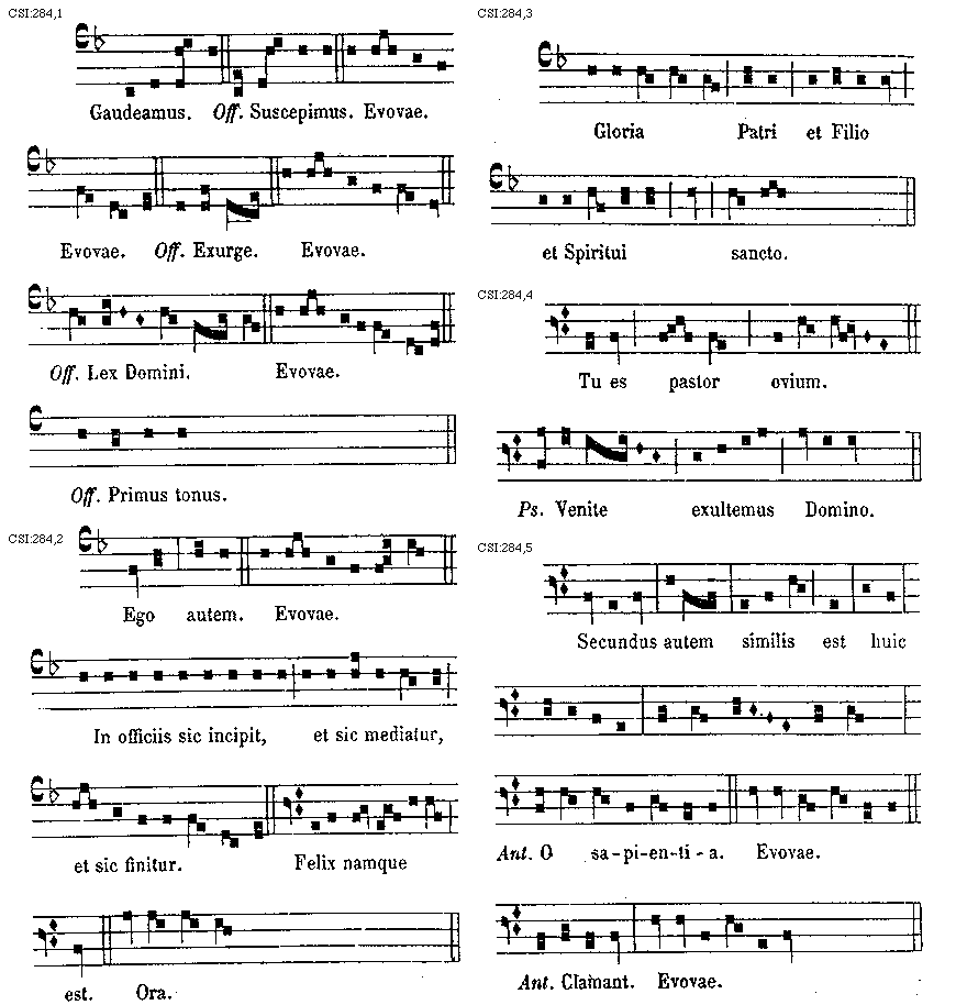 [CSI:284,2; text: Ego autem. Evovae. In officiis sic incipit, et sic mediatur, et sic finitur. Felix namque est. Ora] [PETTRA 02GF]