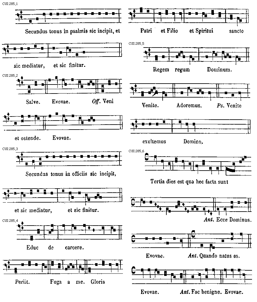 [285] [CSI:285,1; text: Secundus tonus in psalmis sic incipit, et sic mediatur, et sic finitur.] [PETTRA 03GF]