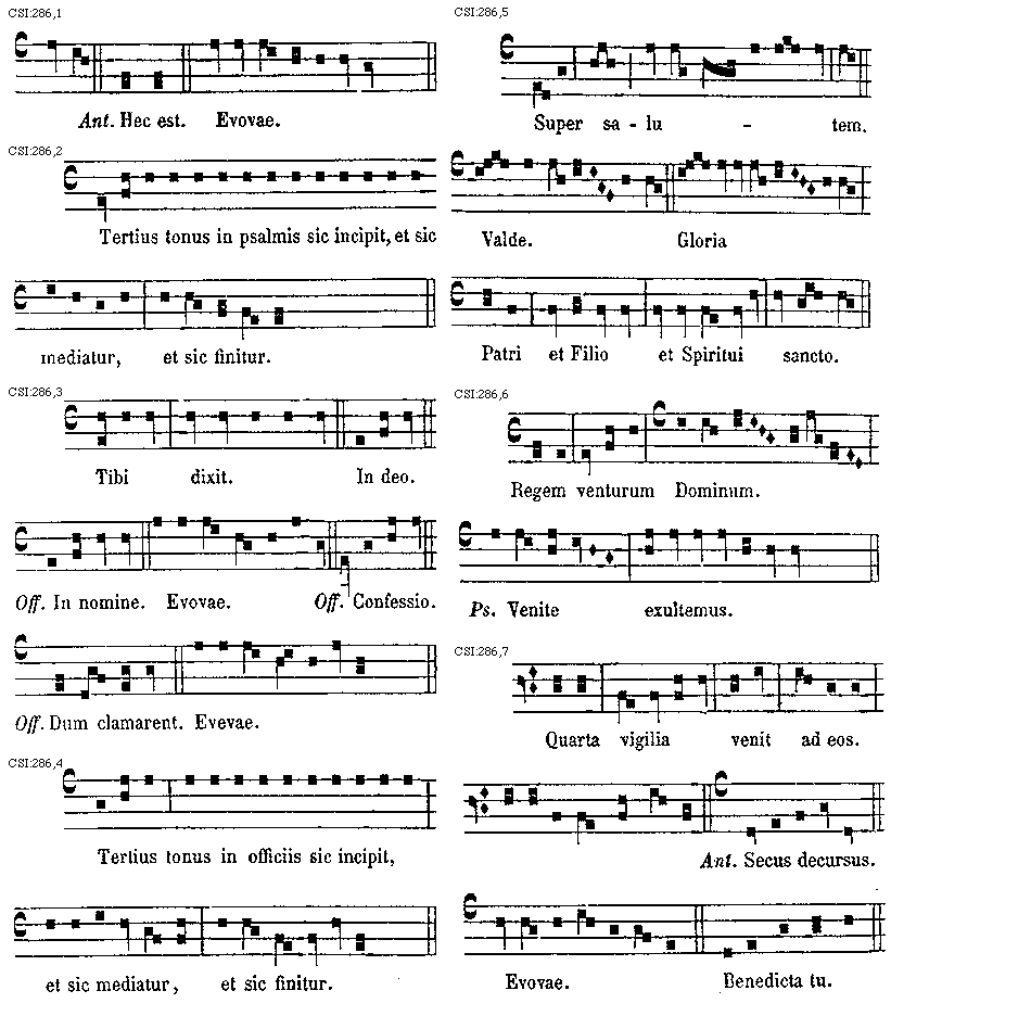 [286] [CSI:286,1; text: Antiphona Hec est. Evovae.] [PETTRA 04GF]