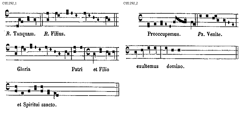 [292] [CSI:292,1; text: Responsorium Tanquam. Responsorium Filius. Gloria Patri et Filio et Spiritui sancto.] [PETTRA 10GF]