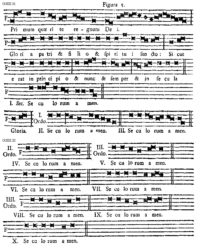 [GSIII:31; text: Figura 5. Primum quaerite regnum Dei. Gloria patri et filio et spiritui sancto: Sicut erat in principio et nunc et semper et in secula, I. II. III. Seculorum amen. Gloria. Primus Ordo.] [SALSCI 05GF]