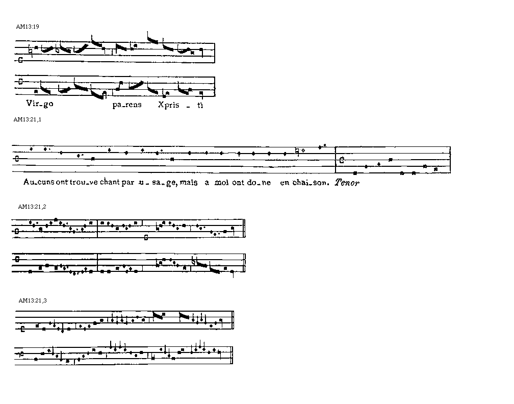 [AM13:21,1; text: Aucuns ont trouve chant par usage, mais a moi ont done en chaison. Tenor.] [AGANOCO 01GF]