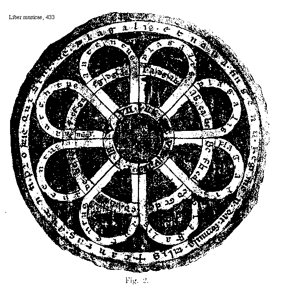 [Liber musicae, 433; text: Figura 2, cantus autenti proprie qui sint ue plagalis et noua fingenti regimen dat formula talis, plagalis, autentus, I, II, III, IV, V, VI, VII, VIII, [Gamma]a, dg, a[sqb], ab, ea, [sqb]c, Bc, f[sqb], cd, Gc, de, ef, [sqb]e, fg, e, f, cf, ga, dg, aacc, numquam, sepe, raro, plaga prothus, plaga deuterus, plaga tritus, plaga tetrardus, autentus prothus, autentus deuterus, autentus tritus, autentus tetrardus, <legi non potest>] [ANOLIBM 02GF]
