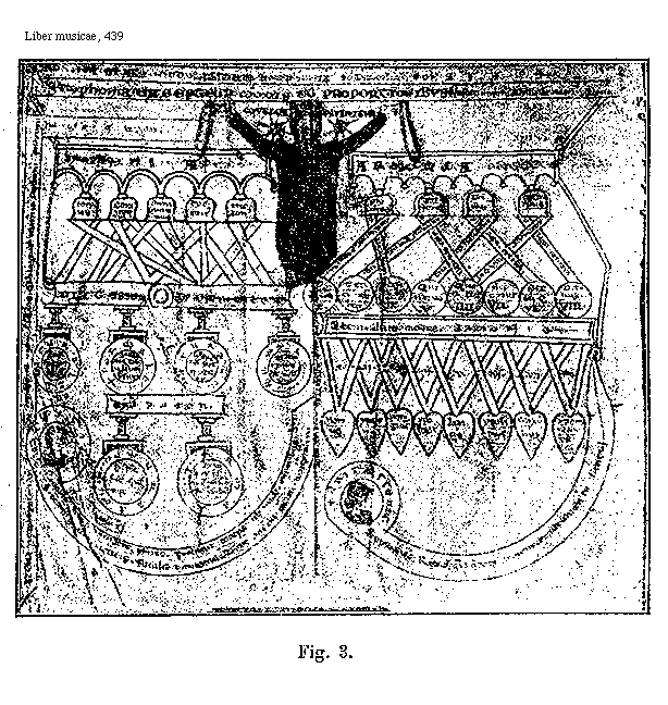 [Liber musicae, 439; text: Figura 3, SYMPHONIA, ARMONIA, diatesseron, dyapente, dyapason, tonus, semitonium, semidyctonus, dyctonus, trictonus, <legi non potest>] [ANOLIBM 03GF]
