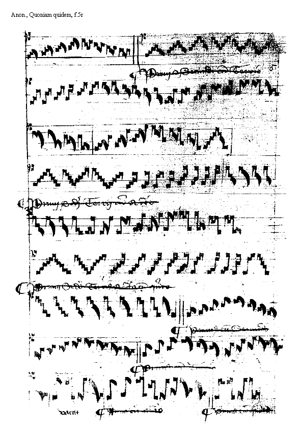 [Anon., Quoniam quidem, f.7r, 1; text: Dyapente cum Tono, concordia.] [BERMAN1 08GF]