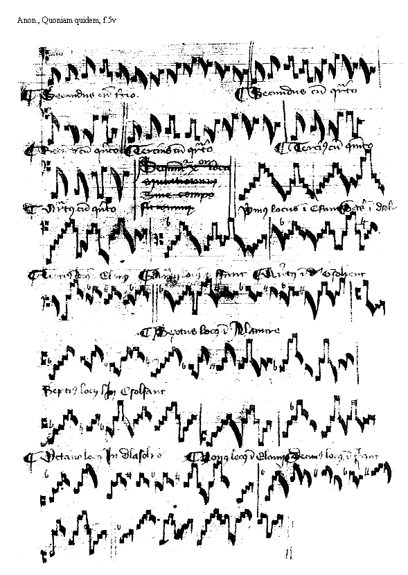 [Anon., Quoniam quidem, f.6v, 10; text: Dyapente cum semitonio minori, concordia.] [BERMAN1 08GF]