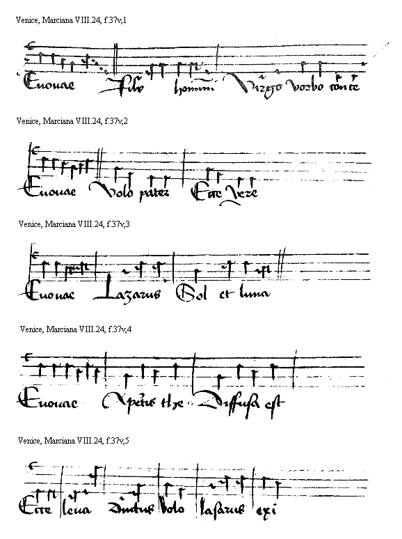 [Venice, Marciana VIII.24, f.38r,2; text: Euouae, Quem vidistis, Ante luciferum] [HEHESUMM 07GF]