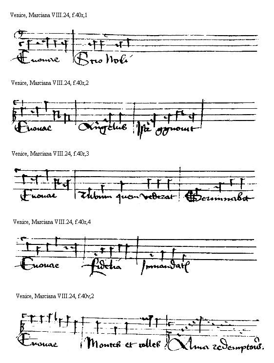 [Venice, Marciana VIII.24, f.40v,2; text: Euouae, Montes et colles, Alma redemptoris] [HEHESUMM 11GF]
