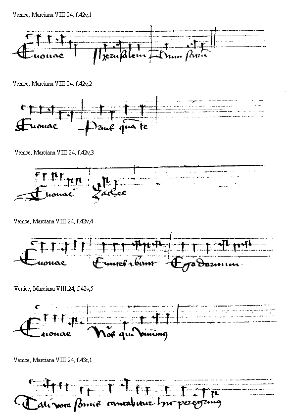 [Venice, Marciana VIII.24, f.42v,1; text: Euouae, Iherusalem, Dum sacrum] [HEHESUMM 16GF]