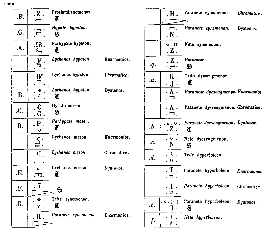 9. Musicarum notarum grecarum per voces conveniens dispositio in tribus generibus.