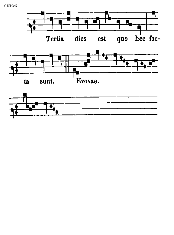 [271] Sic igitur tactus cantus potest finiri in voce tertia C, in sexta F, in septima G, quia soni illi duobus pariter ascendunt tonis, si neuma et in aliis locis multis monocordi posset dicta antiphona notari et decantari; in quantum autem terminatur in voce tertia C, vel in sexta F, quinti vel sexti, sed potius sexti quam quinti. Sed cum terminatur in septima G, octavi posset etiam poni exemplum de multis cantibus qui non ascendunt ultra quartam, vel quintam, qualiter in distinctis monocordi locis possunt notari et decantari. Ex dictis patet quod similitudinem inter voces distinctas arguit similis tonorum et semitoniorum dispositio quantum ad dyapente et dyatessaron species; dissimilitudinem vero dissimilis ex his etiam confirmantur aliqua que supradicta sunt capitulo de vocum affinitate.