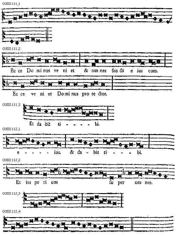 [GSIII:111,2; text: Ecce Dominus veniet et omnes sancti eius cum. Ecce veniet Dominus protector.] [MARLU11 05GF]