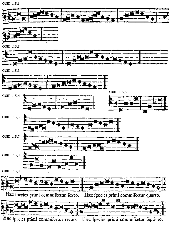 [GSIII:115,9; text: Haec species primi commiscetur sexto. Haec species primi commiscetur quarto. Haec species primi commiscetur tertio. Haec species primi commiscetur septimo.] [MARLU11 07GF]