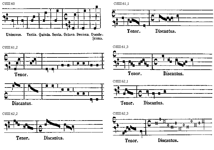[CSIII:60; text: Unisonus. Tertia. Quinta. Sexta. Octava. Decima. Duodecima.] [MURARSC 01GF]