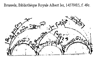 [Brussels, Bibl. Roy., 1479/85, f.49r, text: diapason que dupla, diapente in proporcione sesquedupla, diapente in sesquedupla, diatesseron in sesquetercia, tonus in sesqueoctaua] [MURMSPEB 01GF]