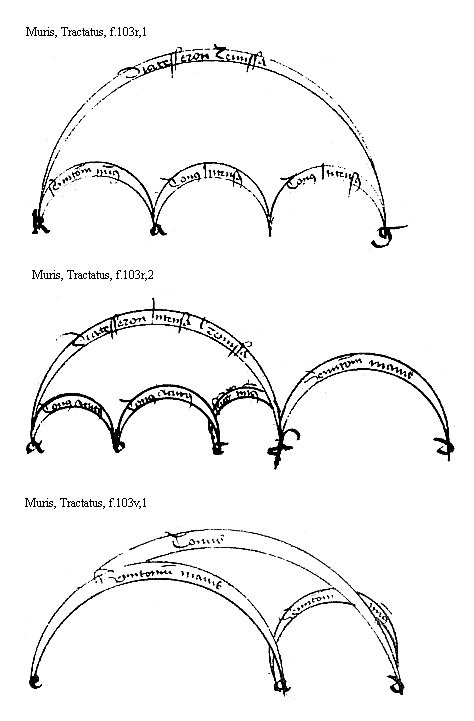 [f.103v] [Muris, Tractatus, f.103v,1; text: Tonus, Semitonium maius, Semitonium minus, a, d, e] [MURMSPEC 09GF]
