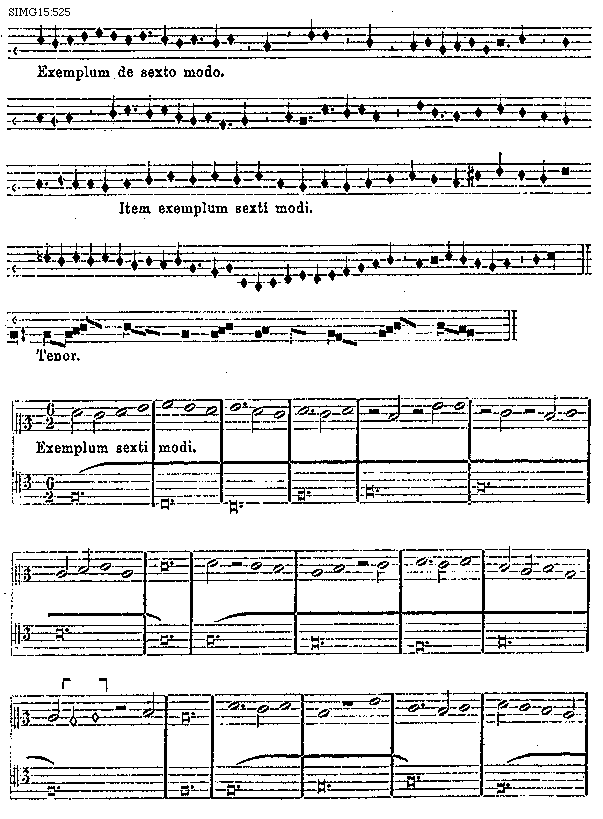 [SIMG15:525; text: Exemplum de sexto modo. Item exemplum sexti modi. Tenor. Exemplum sexti modi.] [PETCOM 11GF]