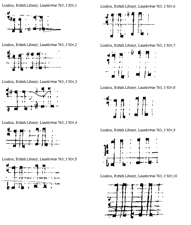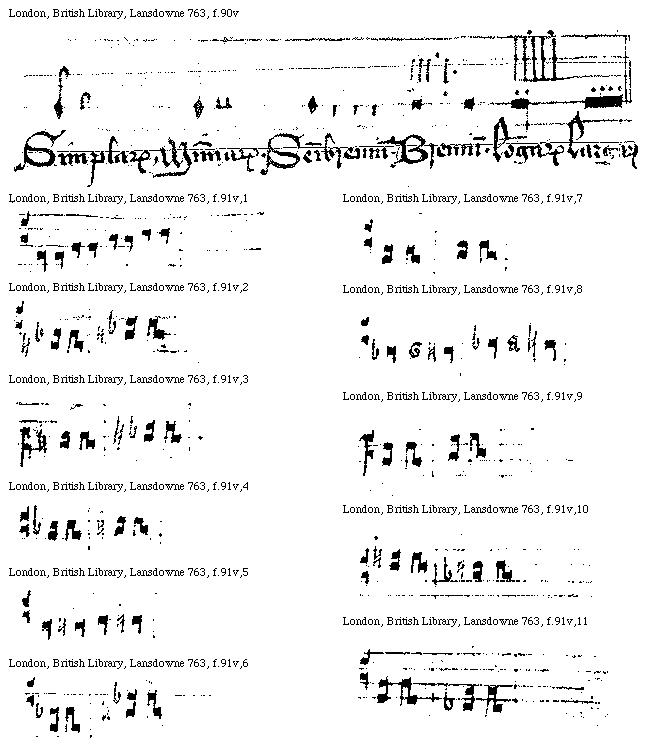 [London, British Library, Lansdowne 763, f.90v; text: Simplarum. Minimarum. Semibreuium. Breuium. Longarum, Largarum] [TORKDEC 02GF]
