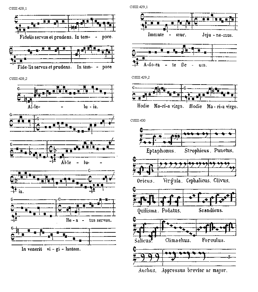 Source: Scriptorum de musica medii aevi nova series a Gerbertina altera, 4 vols., ed. Edmond de Coussemaker (Paris: Durand, 1864-76; reprint ed., Hildesheim: Olms, 1963), 3:416–75.