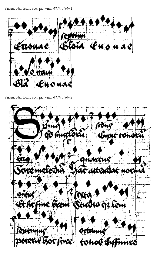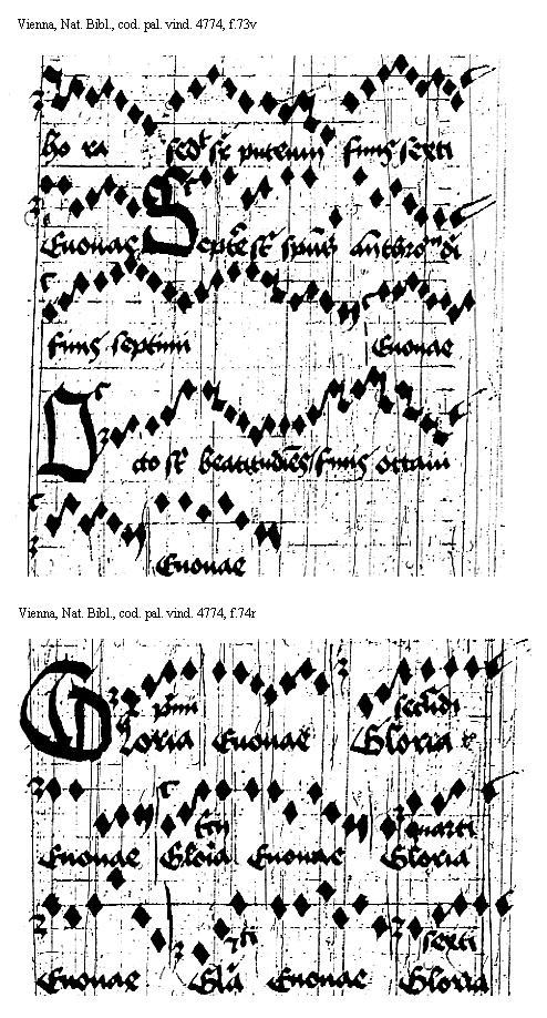 [f.74v] [Vienna, Nationalbibliothek, cod. pal. vind. 4774, f.74v,1; text: Euouae, Gloria, septimi, octaui] [ANOHOL3 18GF] [ANOHOL3 18GF]