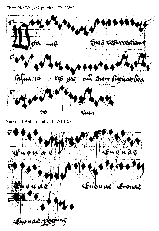 [Vienna, Nationalbibliothek, cod. pal. vind. 4774, f.87r,3; text: Alleluia] [ANOHOL3 45GF]
