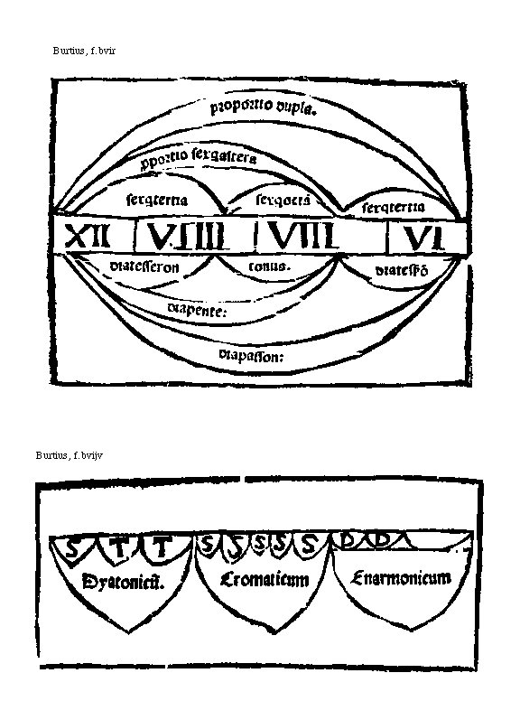 [Burtius, f.bvijv; text: Dyatonicum. Cromaticum, Enarmonicum, Semitonium, Tonus, Dyesis] [BURMUS1 01GF]