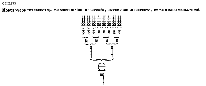 [273] [CSIII:273; text: Modus major imperfectus, de modo minori imperfecto, de tempore imperfecto, et de minori prolatione.] [FLATRA 07GF]