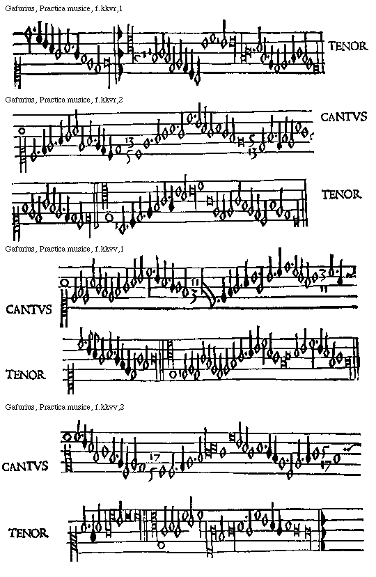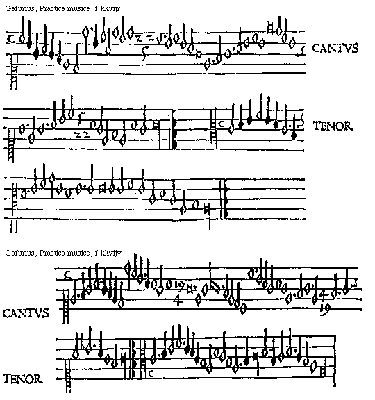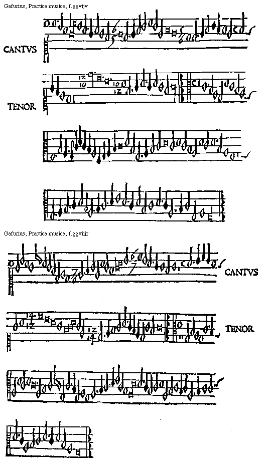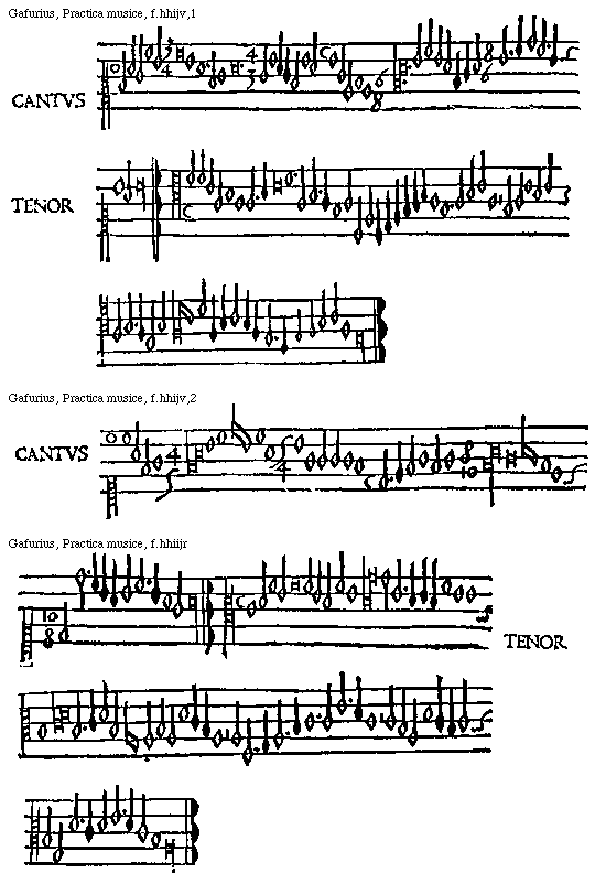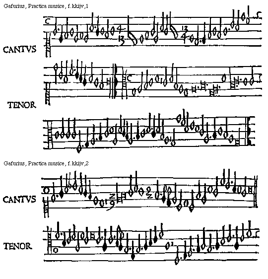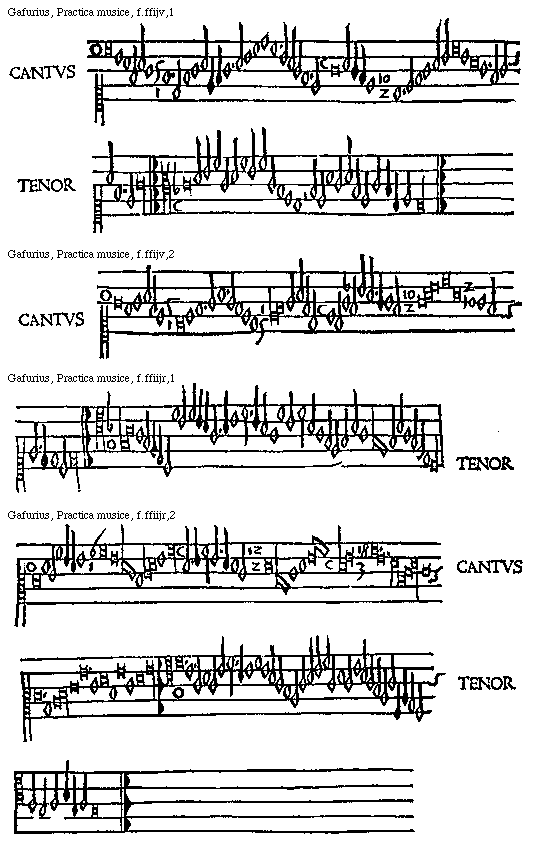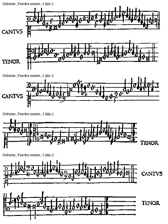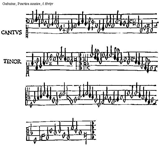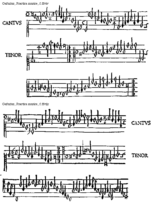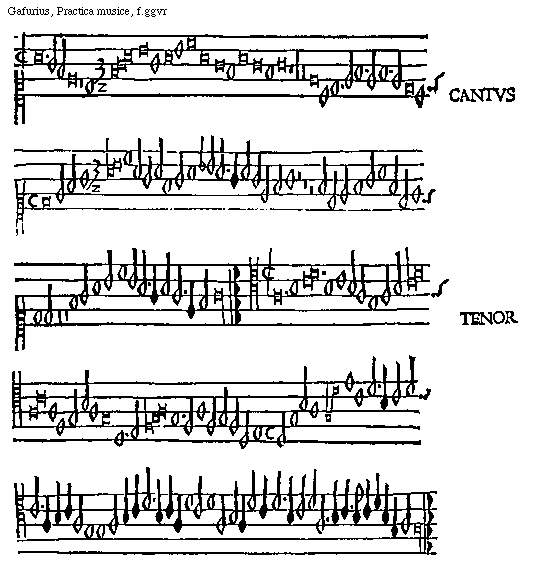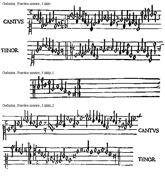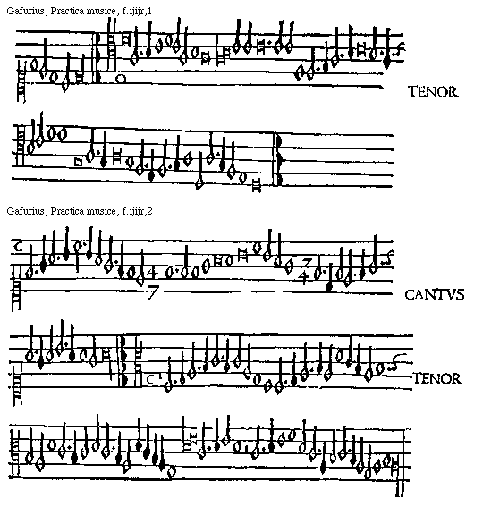 [Gafurius, Practica musice, f.lliiijv,2; text: CANTVS, TENOR] [GAFPM4 49GF]
