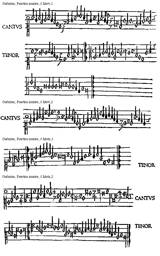 [Gafurius, Practica musice, f.ffiiijr,2; text: CANTVS, TENOR] [GAFPM4 05GF]