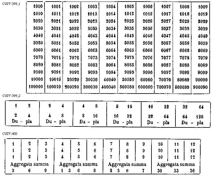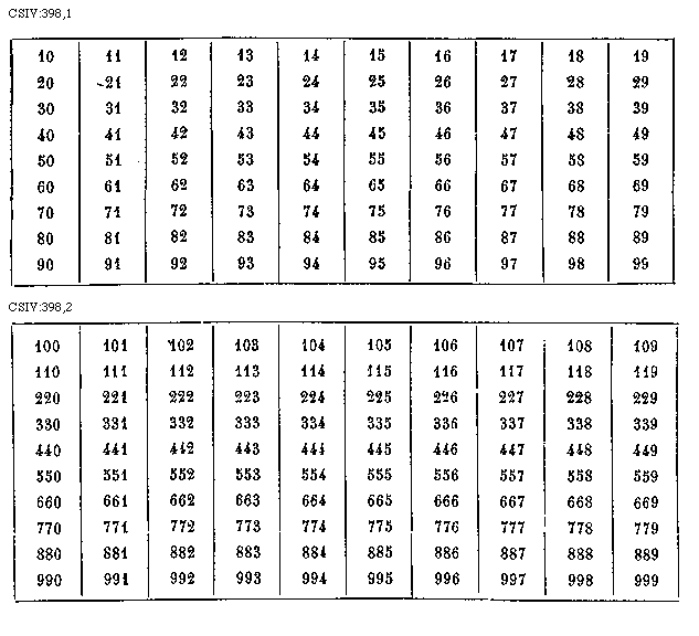 [CSIV:398,2; text: 100, 101, 102, 103, 104, 105, 106, 107, 108, 109, 110, 111, 112, 113, 114, 115, 116, 117, 118, 119, 220, 221, 222, 223, 224, 225, 226, 227, 228, 229, 330, 331, 332, 333, 334, 335, 336, 337, 338, 339, 440, 441, 442, 443, 444, 445, 446, 447, 448, 449, 550, 551, 552, 553, 554, 555, 556, 557, 558, 559, 660, 661, 662, 663, 664, 665, 666, 667, 668, 669, 770, 771, 772, 773, 774, 775, 776, 777, 778, 779, 880, 881, 882, 883, 884, 885, 886, 887, 888, 889, 990, 991, 992, 993, 994, 995, 996, 997, 998, 999] [GALTRA 01GF]