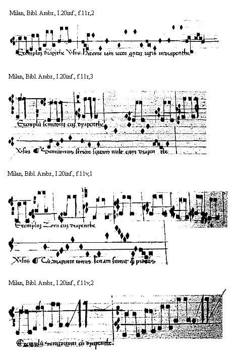 OOtaui toni in cantibus Ambrosianis ista sunt exempla vtuntur autem sine vlla differentia tono tantummodo capitali.