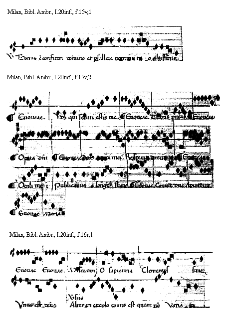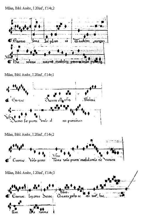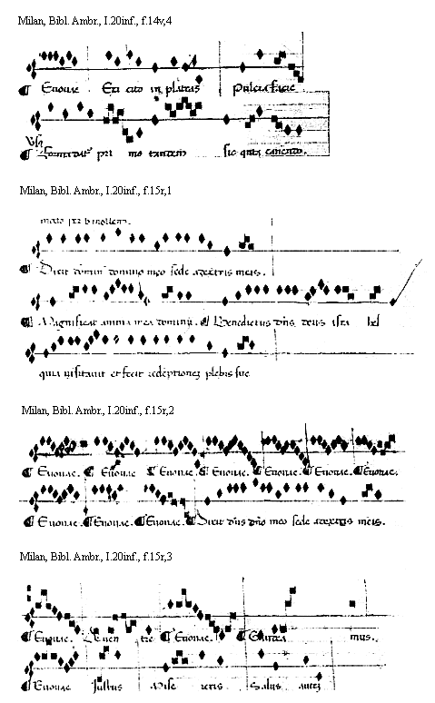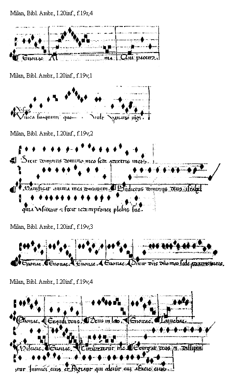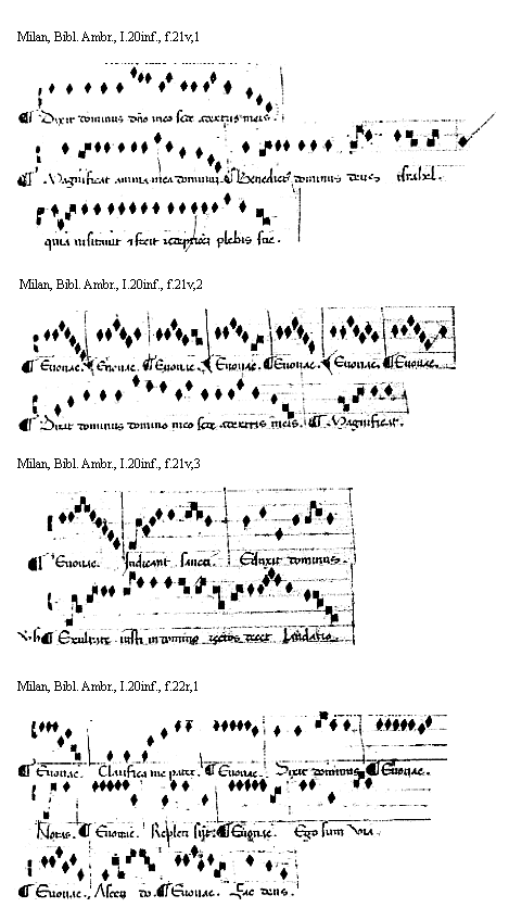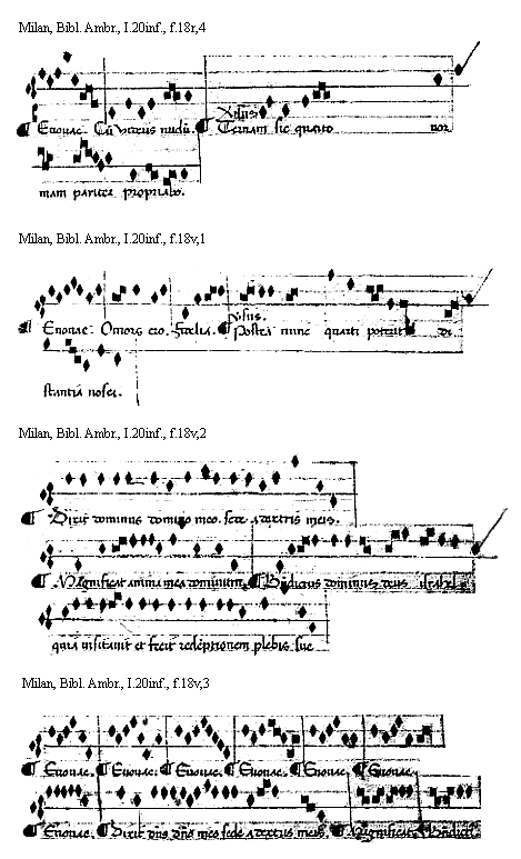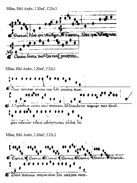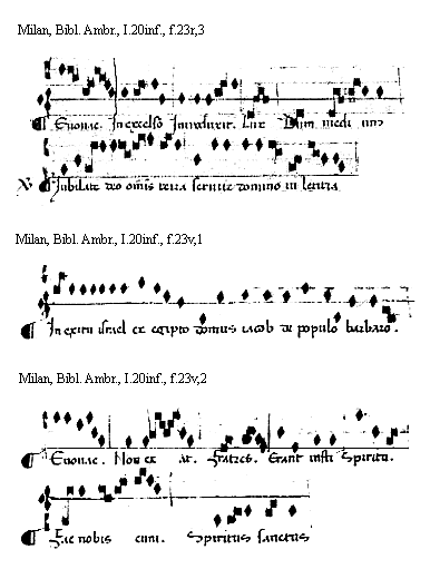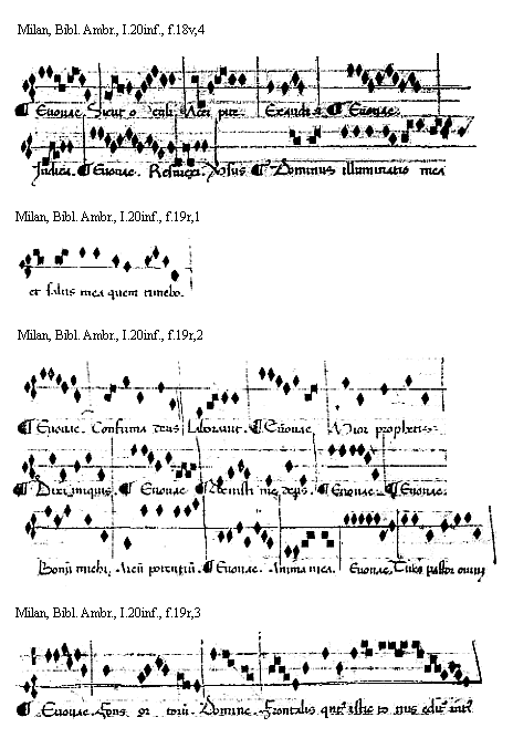 [Milan, Bibl. Ambr., I.20.inf., f.23r,3; text: Euouae. In excelso Introduxit. Lux, Dum medium, versus Iubilate deo omnis terra seruite domino in letitia] [JOHPALM 29GF]