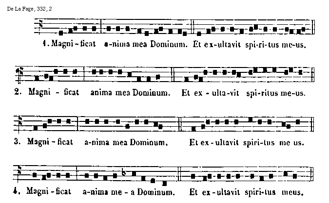 [De La Fage, 332,2; text: 1. Magnificat anima mea Dominum. Et exultavit spiritus meus. 2. 3. 4.] [NICCOM 11GF]