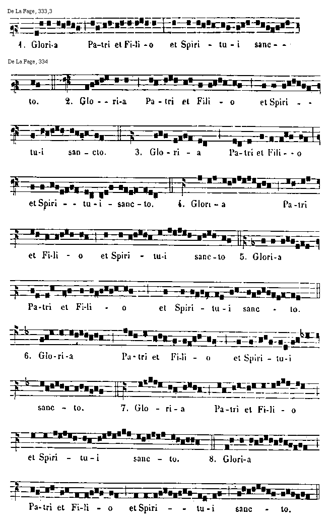 [334] [De La Fage, 334; text: 2. Gloria Patri et Filio et Spiritui sancto. 3. 4. 5. 6. 7. 8.] [NICCOM 13GF]