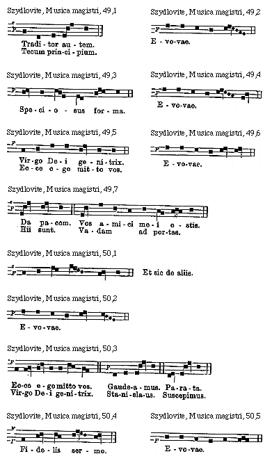 [Szydlovite, Musica magistri, 67,8; text: F, Evovae.] [SZYDMUS 35GF]