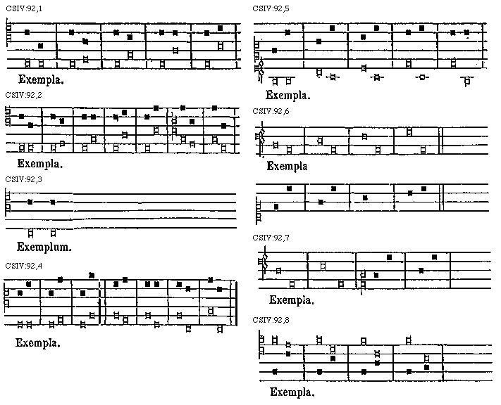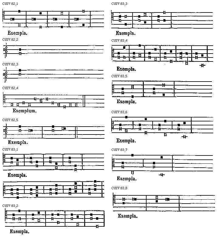 Porro animadvertendum est quod in iis et in reliquis nostrae hujus compilationis exemplis ubi neque tenor, neque contrapunctus suscriptus fuerit, notae vacuae ad tenorem, impletae ad contrapunctum et mixtae idest partim vacuae et partim impletae ad utrumque pertinent.