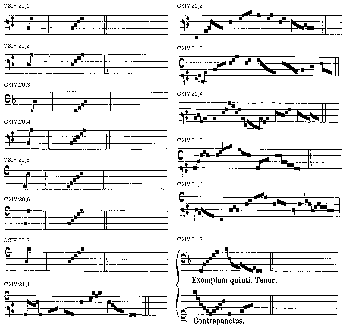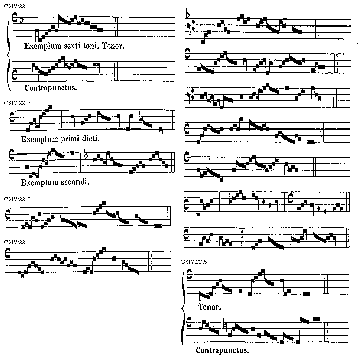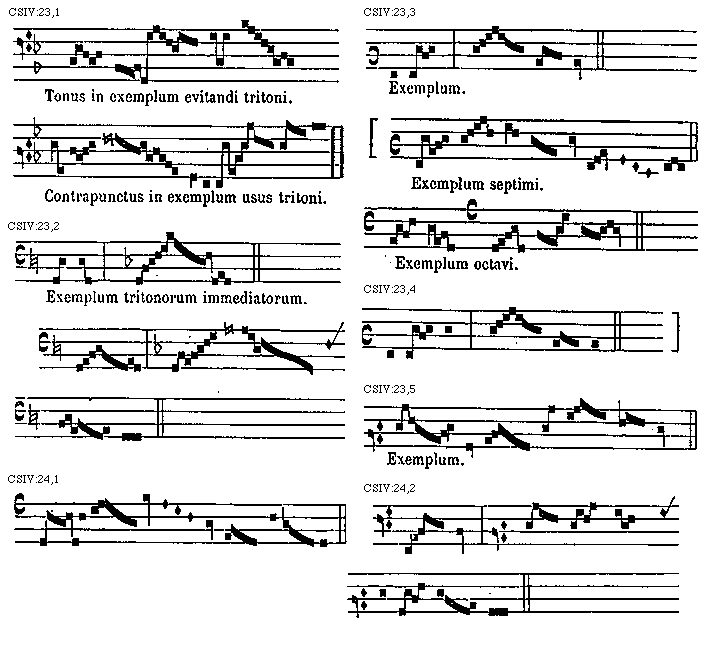 [CSIV:23,1; text: Tonus in exemplum evitandi tritoni. Contrapunctus in exemplum usus tritoni.] [TINNAT 03GF]